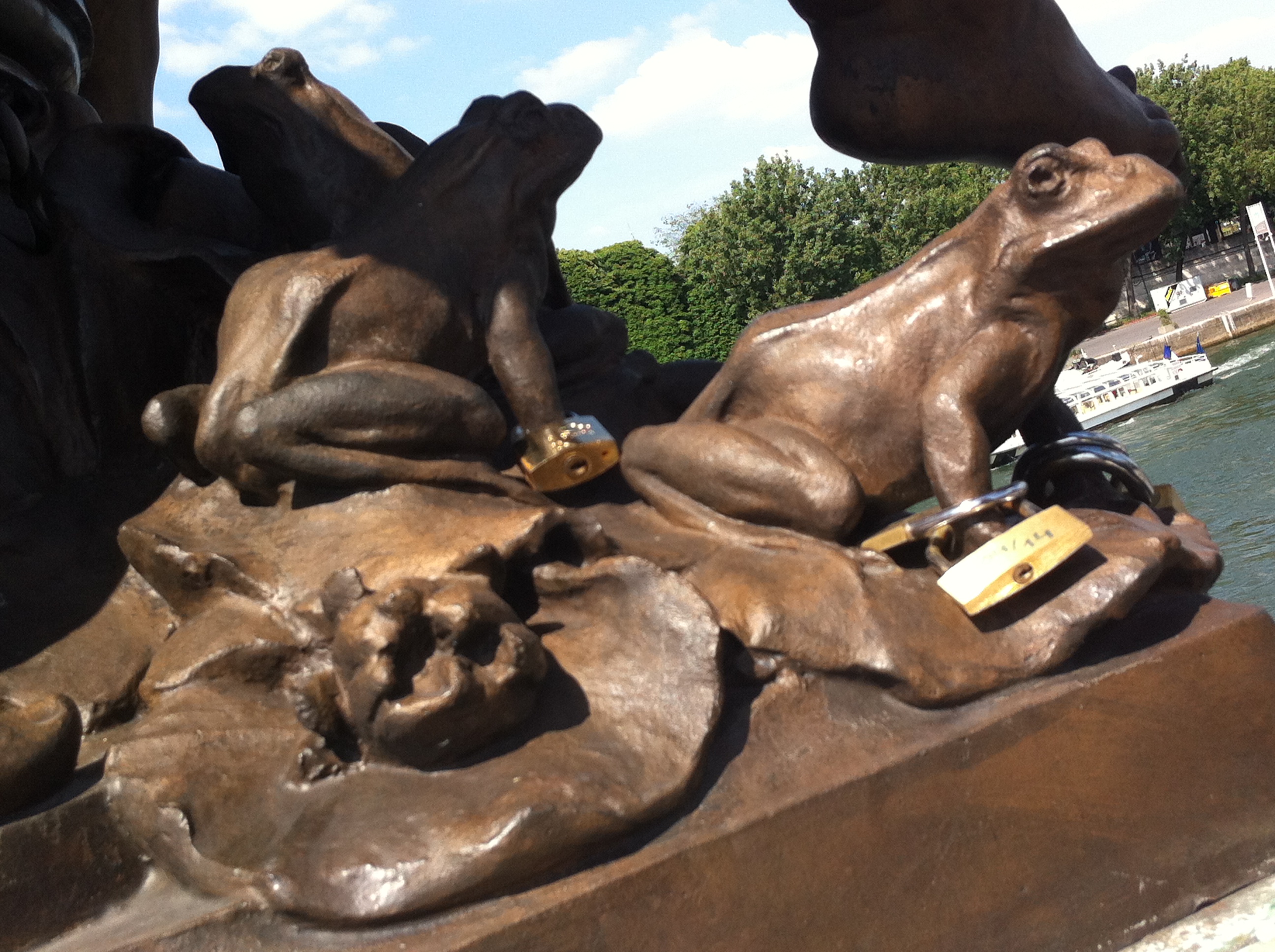 Peut-être plus choquant pour les Parisiens que 60-90 tonnes des cadenas sur le Pont des Arts, c’est l’existence de même un seul cadenas accroché aux statues magnifiques sur le Pont Alexandre III. C’est un type de vandalisme extrême parce que les statues sont les vrais oeuvres d’art.
