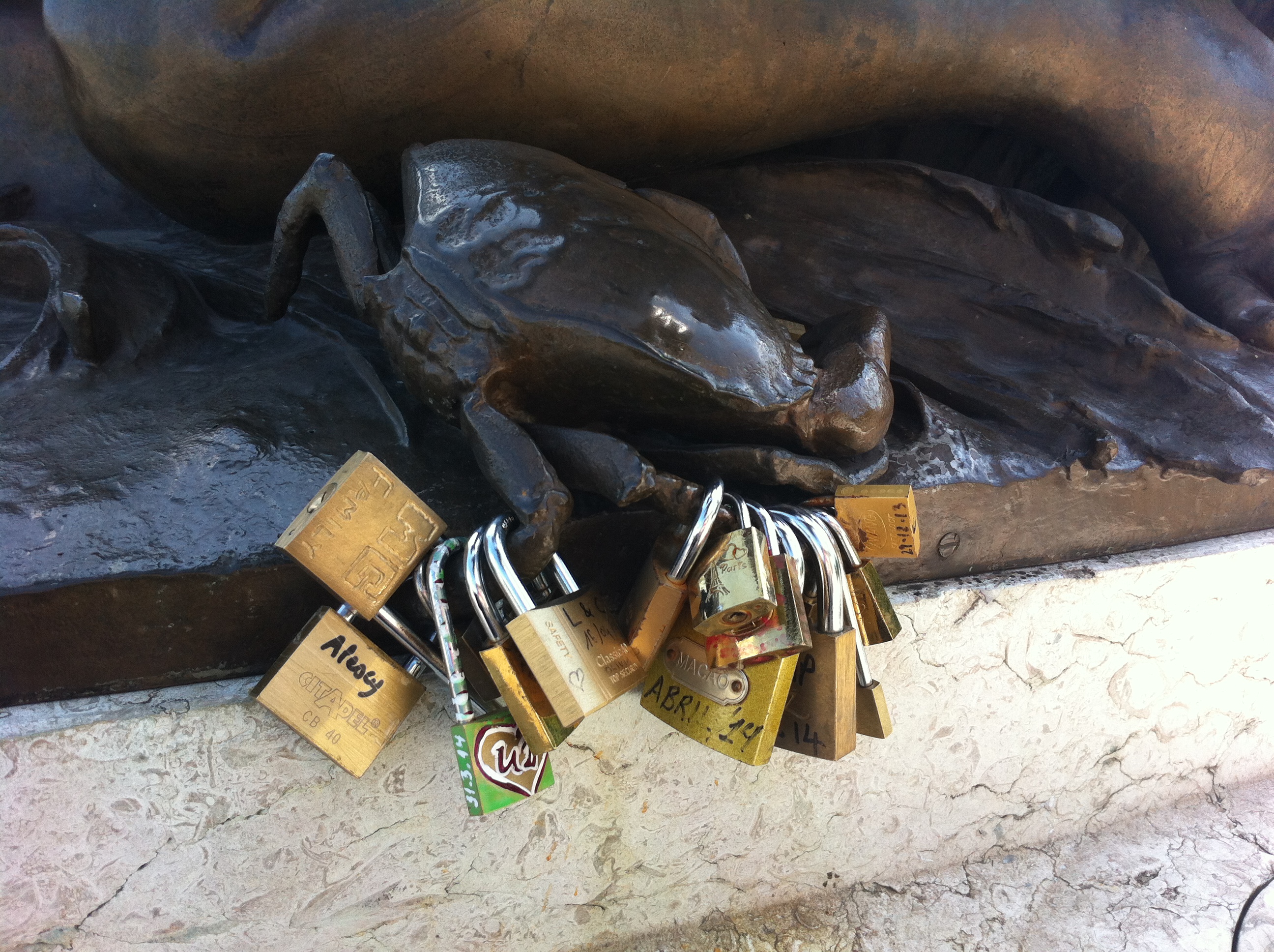 Even more shocking for Parisians than 60-90 tons of locks on the Pont des Arts is the existence of even a single lock attached to the magnificent statues on the Pont Alexandre III. This is a type of extreme vandalism because these statues of true works of art.